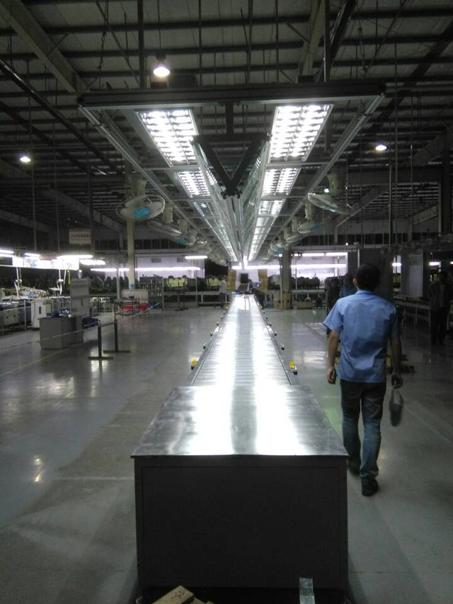 板鏈線原理和皮帶線一致,區(qū)別在于用鏈板連接而成取代了皮帶,較皮帶線的優(yōu)點在于不易磨損,抗沖擊能力大大加強,不易損壞,可以實現(xiàn)較重的產(chǎn)品的運輸。